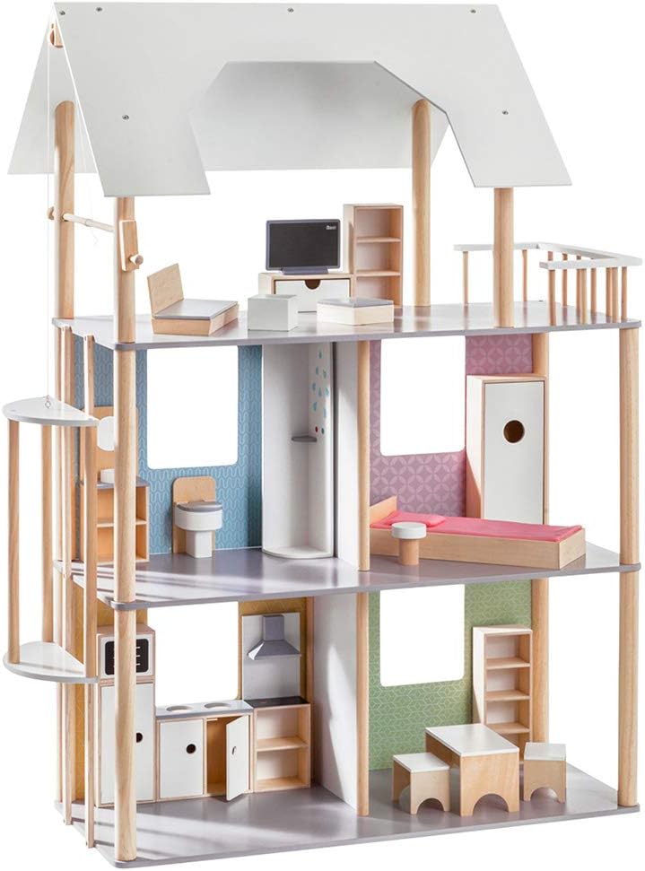 howa Puppenhaus für Ankleidepuppen bis 30 cm incl. 19 TLG. Möbelset aus Holz 70103