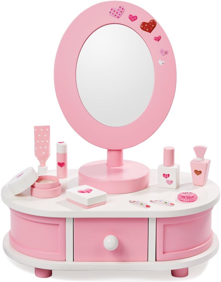howa Kinder Schminktisch aus Holz mit 8 TLG. Zubehör und Herzaufklebern 50012