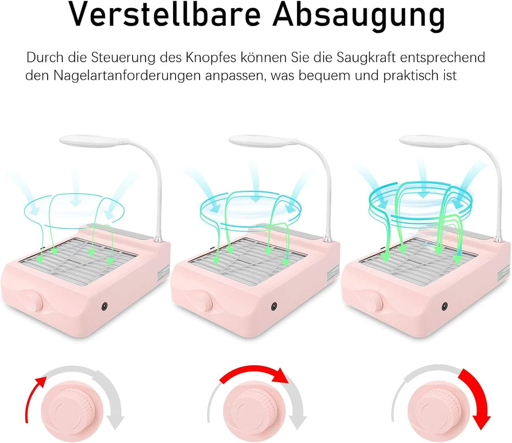 Kleiner Nagel Staubsauger mit Einstellbarer Absaugung, Leistungsstarker Maniküre Nagelstaubsauger fü