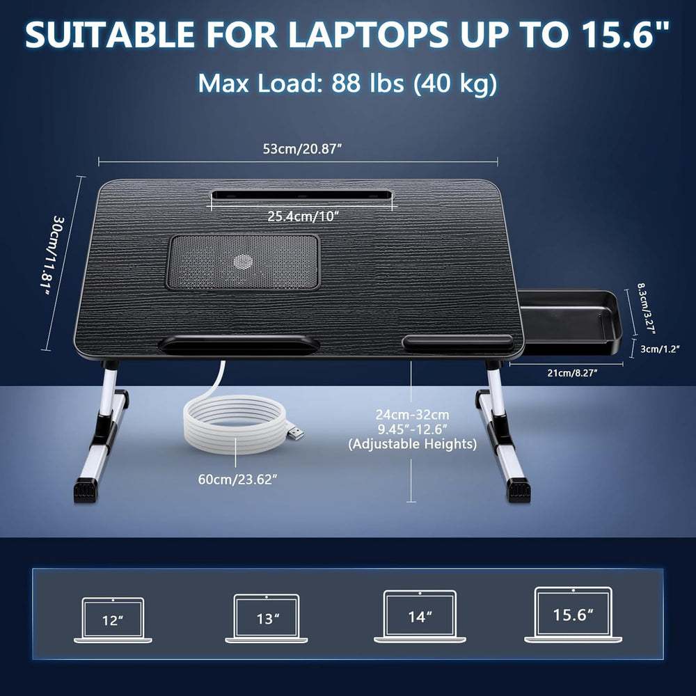 ICARE Laptoptisch, Höhenverstellbar, Winkelverstellbar, Betttisch Klappbar mit Laptop Kühler, Tablet