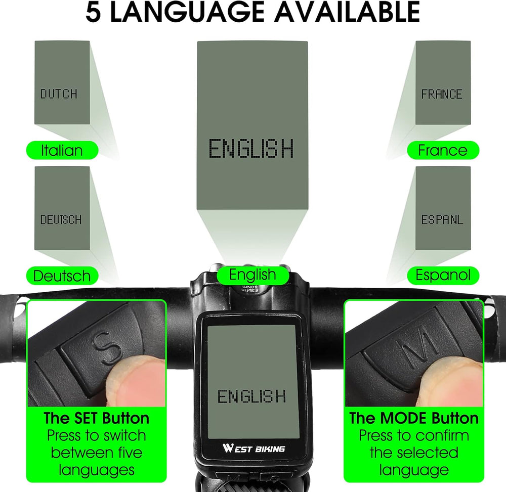 ICOCOPRO Fahrradcomputer Fahrrad Kilometerzähler Kabelloser wasserdichter grosser LCD-Bildschirm 5 S