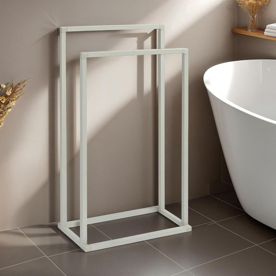 Handtuchhalter MAILO weiss - Handtuchständer mit 2 Stangen, Badetuchhalter freistehend und platzspar