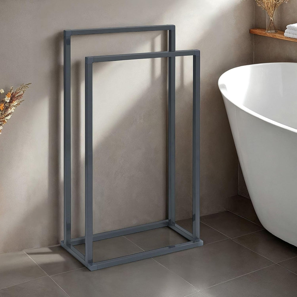 Handtuchhalter MAILO mit 2 Stangen, Grau - Handtuchständer aus Metall, Badetuchhalter freistehend un