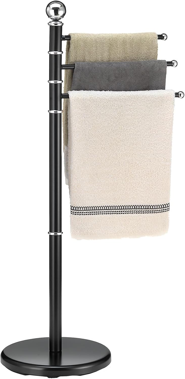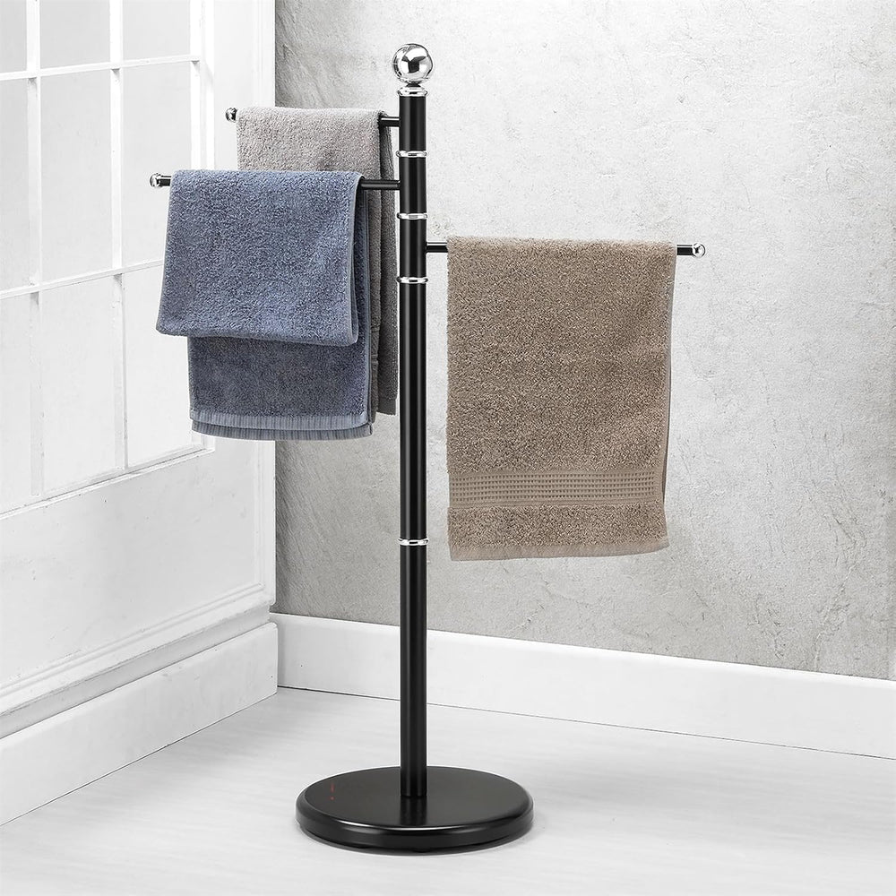 Handtuchhalter Andrew Freistehend, Mattschwarz, aus hochwertigem Metall, mit 2 Armen & sicherem Stan