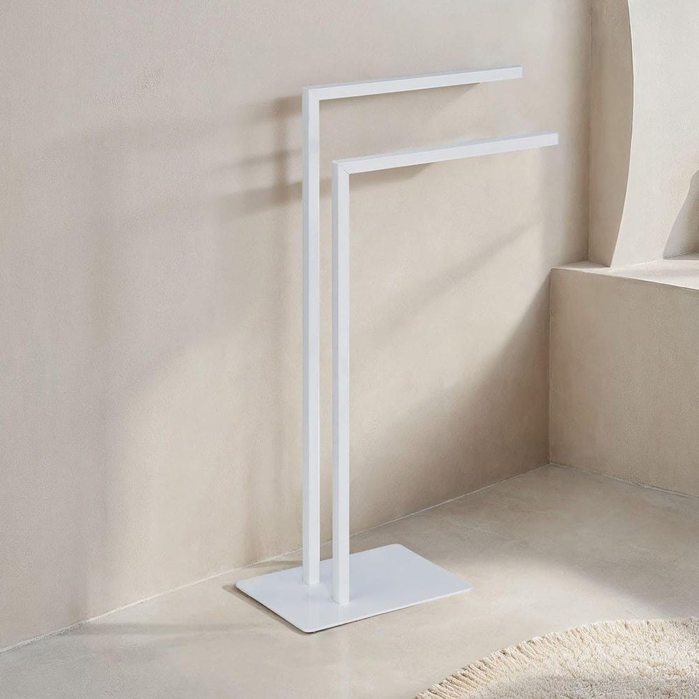 Handtuchhalter Andrew Freistehend, Weiss, aus hochwertigem Metall, mit 2 Armen & sicherem Stand. Ide