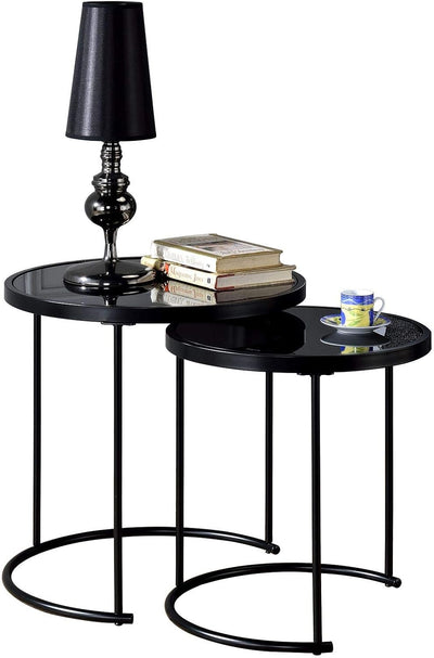 IDIMEX Couchtisch LEYRE im 2er Set,runder Beistelltisch 2-Satztisch mit Glas in schwarz, Sofatisch i