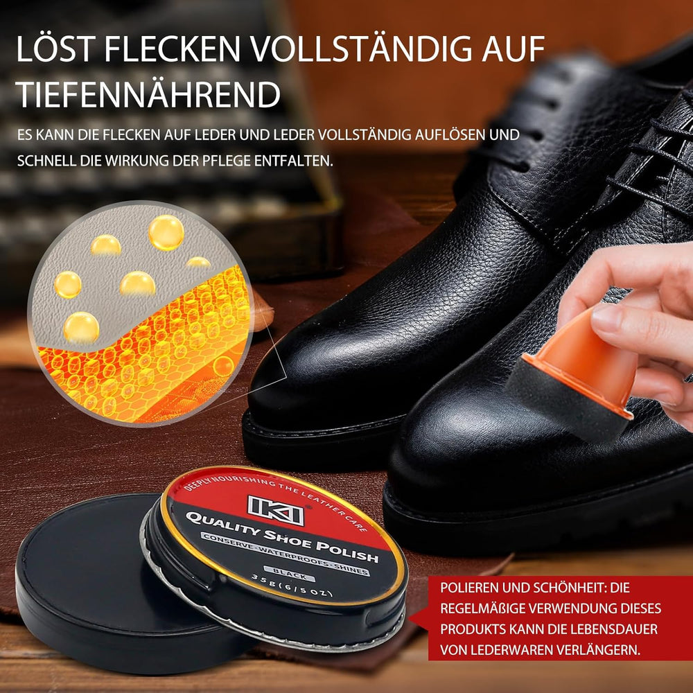 IKI 10tlg Schuhcreme & Pflegeset – Schuhputzset mit Schwarz Schuhcreme Pferdehaar Bürsten Für Leder