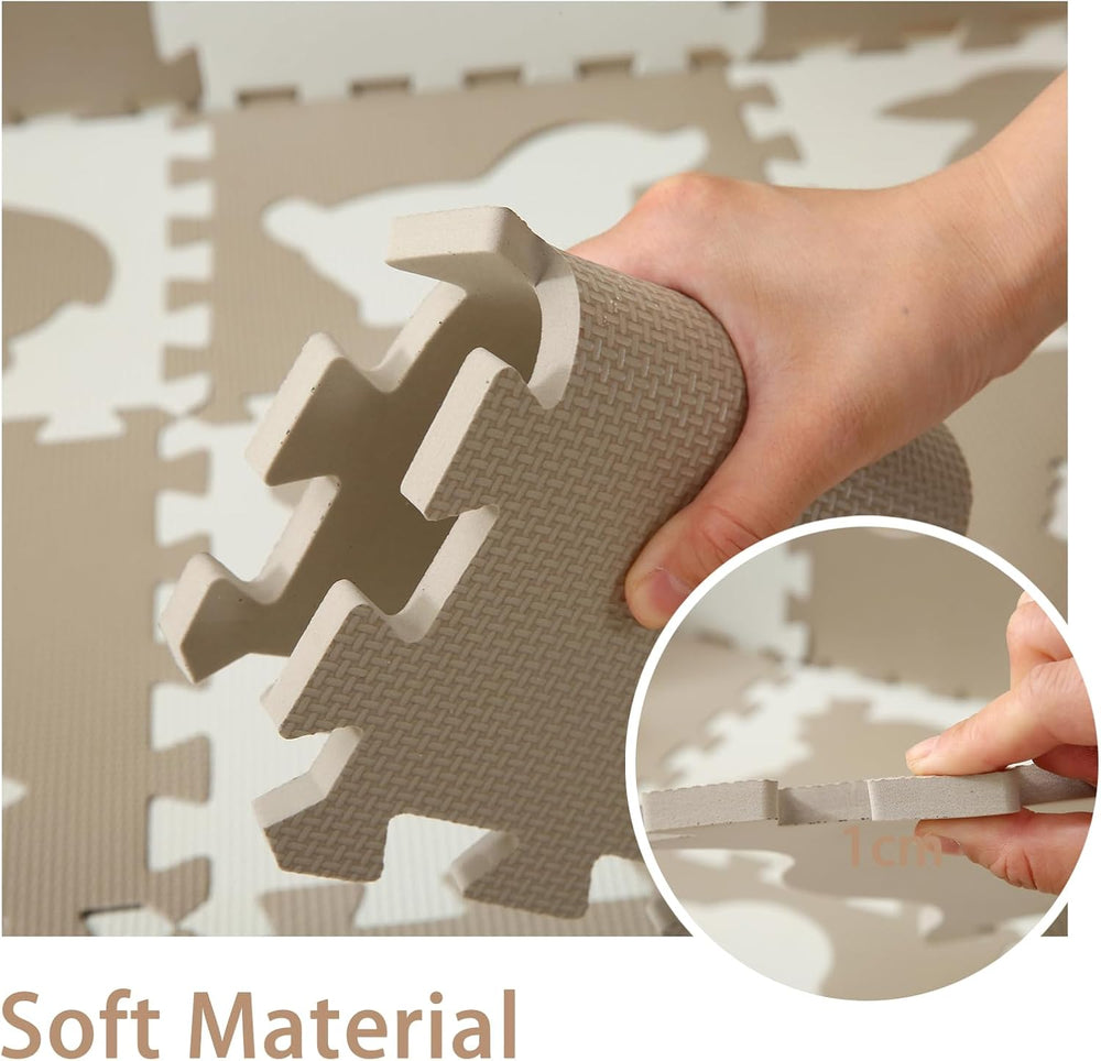 Puzzlematte Baby Kinder Puzzlematten Schadstofffrei Spielmatte Beige Krabbelmatte Tiere Eva Schaumst