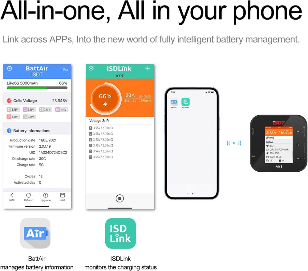 ISDT C4 Air Schnell Akkus Ladegerät,Universal-Haushalt Batterieladegerät mit Bluetooth-APP-Verbindun