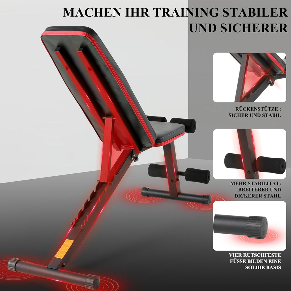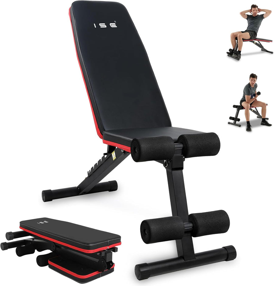 ISE Hantelbank Multifunktion Tranings Fitness Bank klappbar übungsbank verstellbar für Bauch und Bei