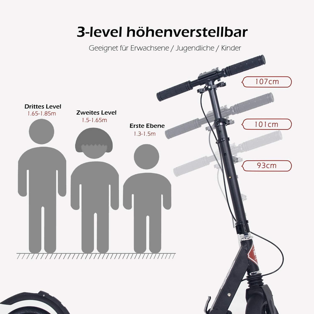 ISE Big Wheel Scooter Tretroller 200mm Roller Cityroller Klappbarer Scooter mit 2 Räder,Handbremse f