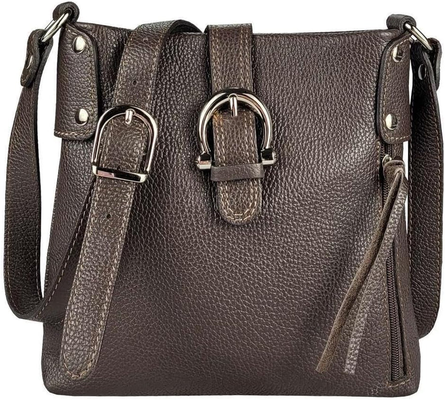 Made in Italy Damen Leder Tasche Shopper Schultertasche City Bag Crossover Umhängetasche Henkeltasch