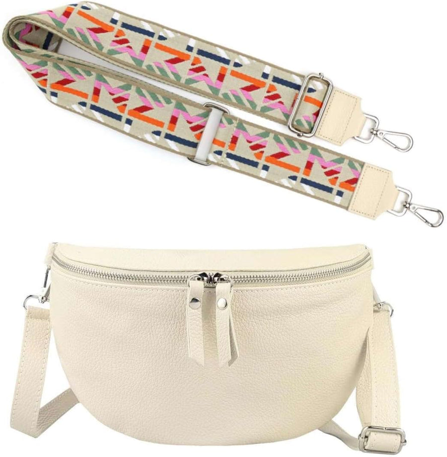 Made in Italy OBC Damen Set Gürteltasche + Schultergurt Leder Crossbody Hüfttasche Bauchtasche Umhän