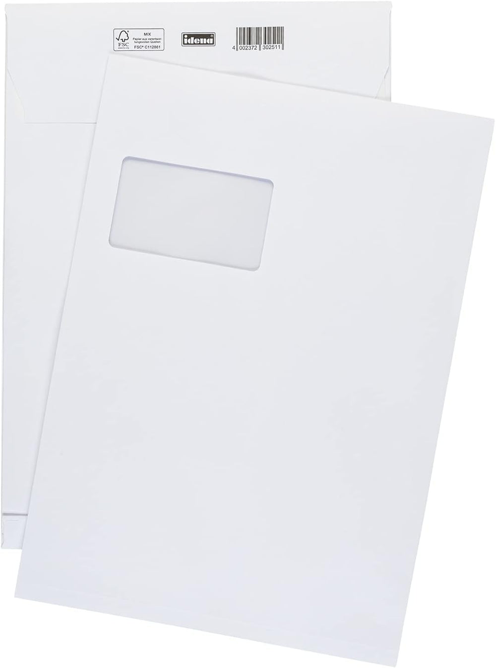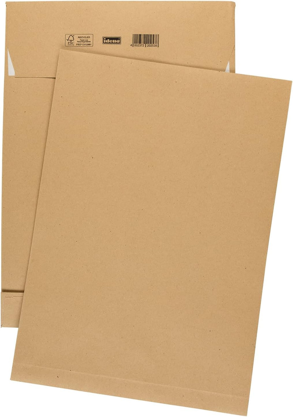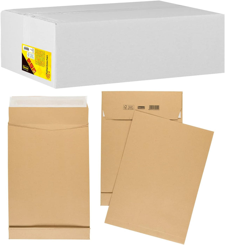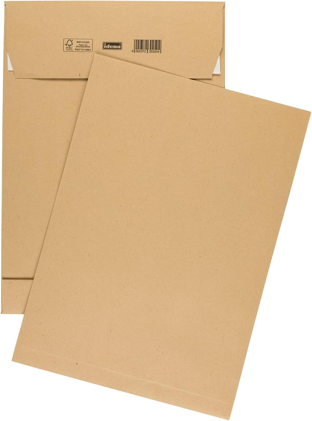 Idena 10251 - Versandtaschen DIN C4, 100 Stück haftklebend, Faltentaschen mit 2 cm Bodenfalte, Umsch