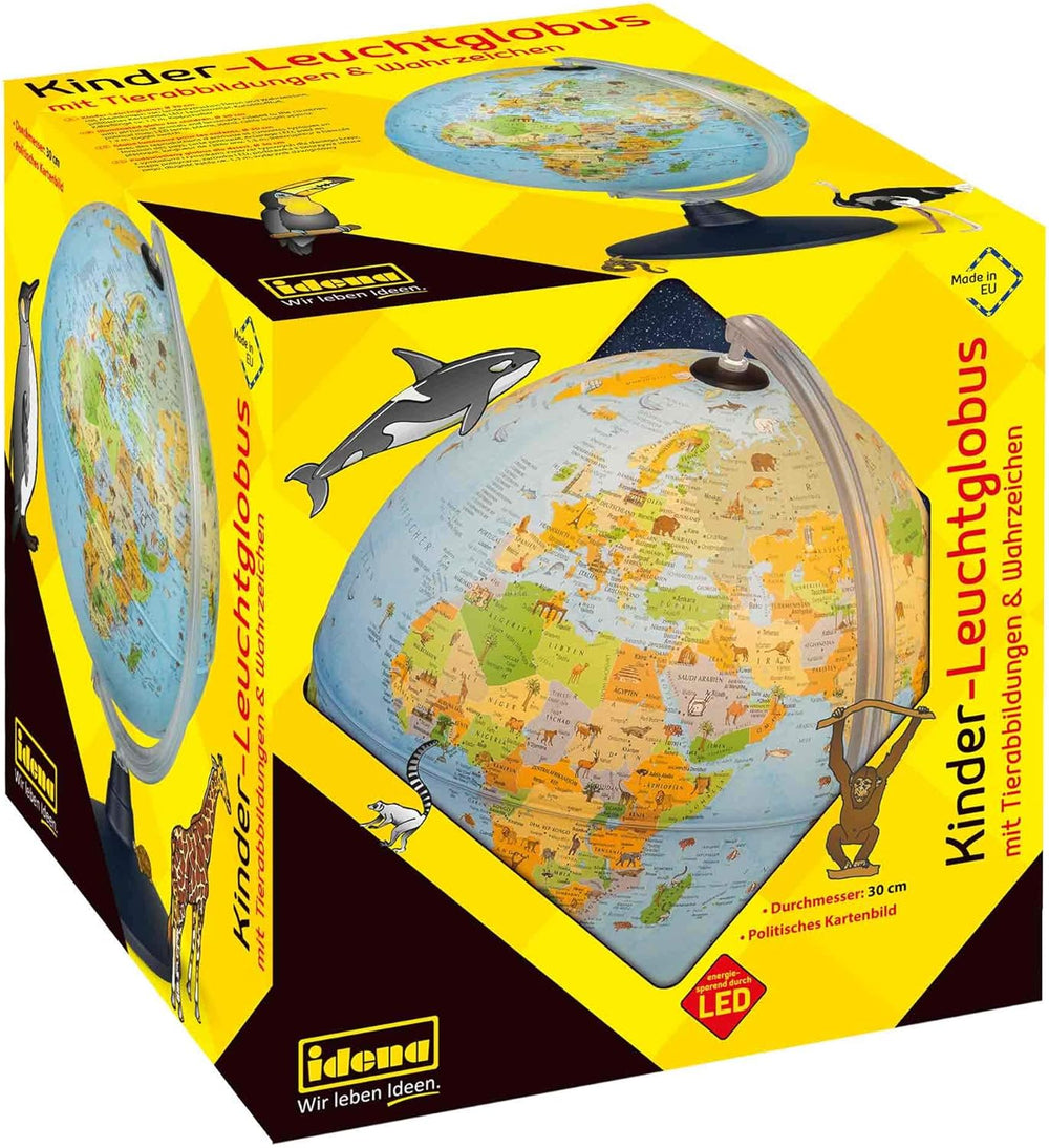 Idena 22059 - Leuchtglobus mit Tierabbildungen, mit LED Beleuchtung und Ein- und Ausschalter, Durchm