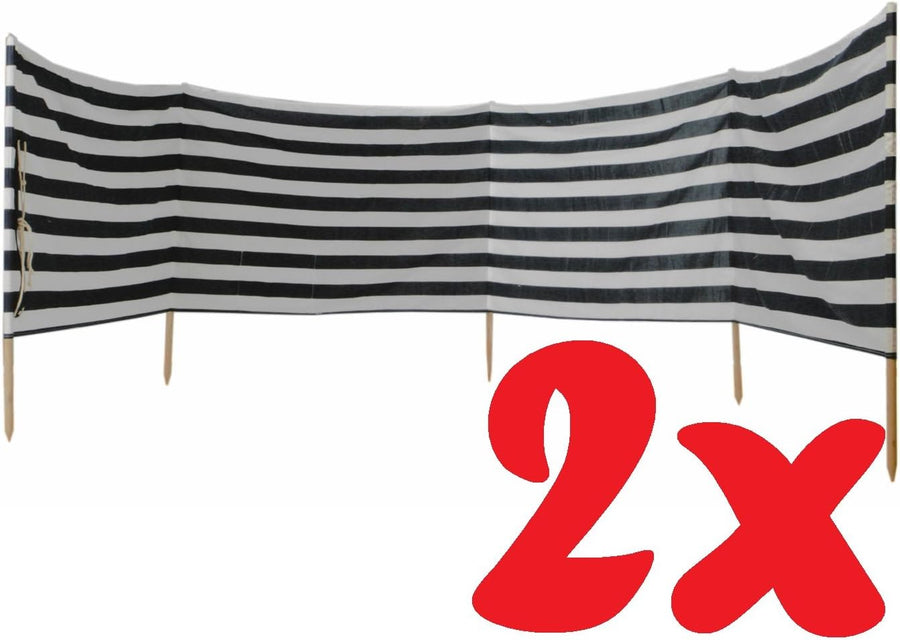 Idena Baumwoll Windschutz incl. 5 Holzstäbe, 5 m x 0,80 m + 2 Strand - Liegematten