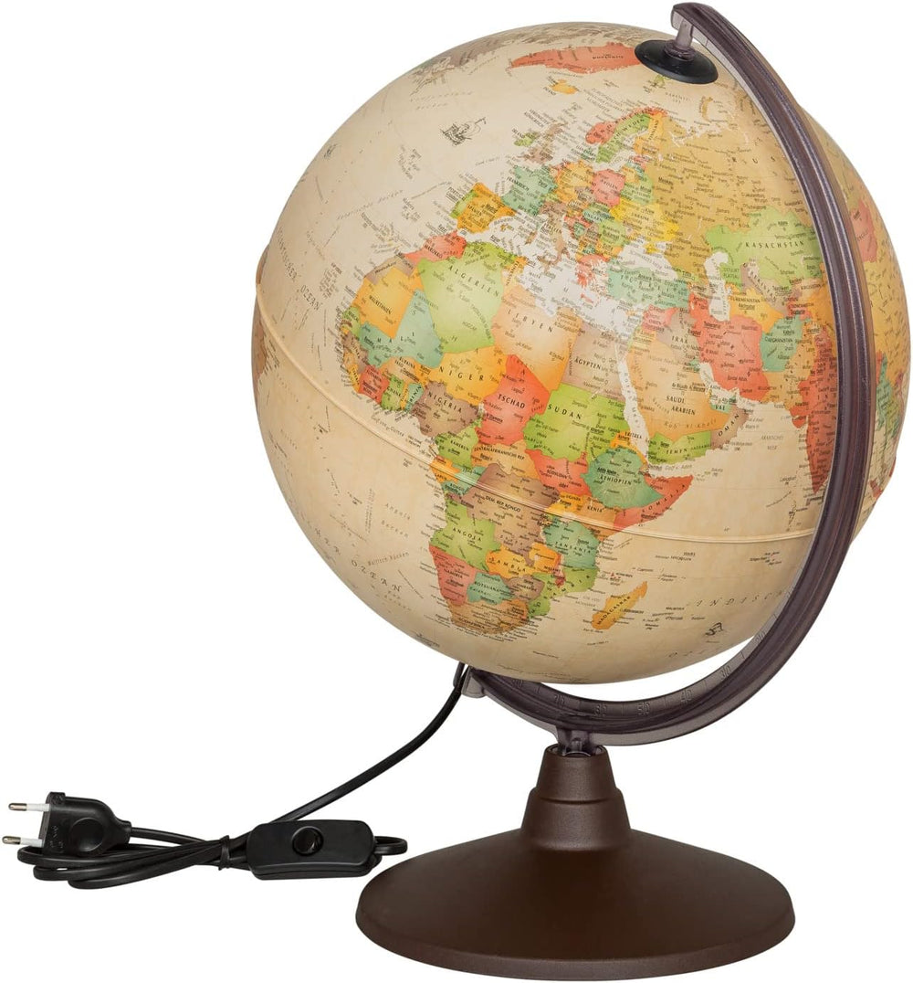 Idena 22904 - Leuchtglobus, im antiken Stil, mit LED Beleuchtung und Ein- und Ausschalter, Durchmess