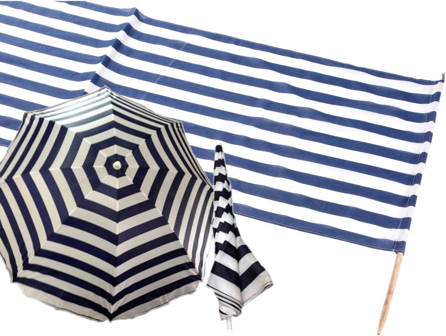 Iden 7576566 - Idena Baumwoll Windschutz incl. 5 Holzstäbe, 5 m x 0,80 m (Set mit Sonnenschirm, Blau