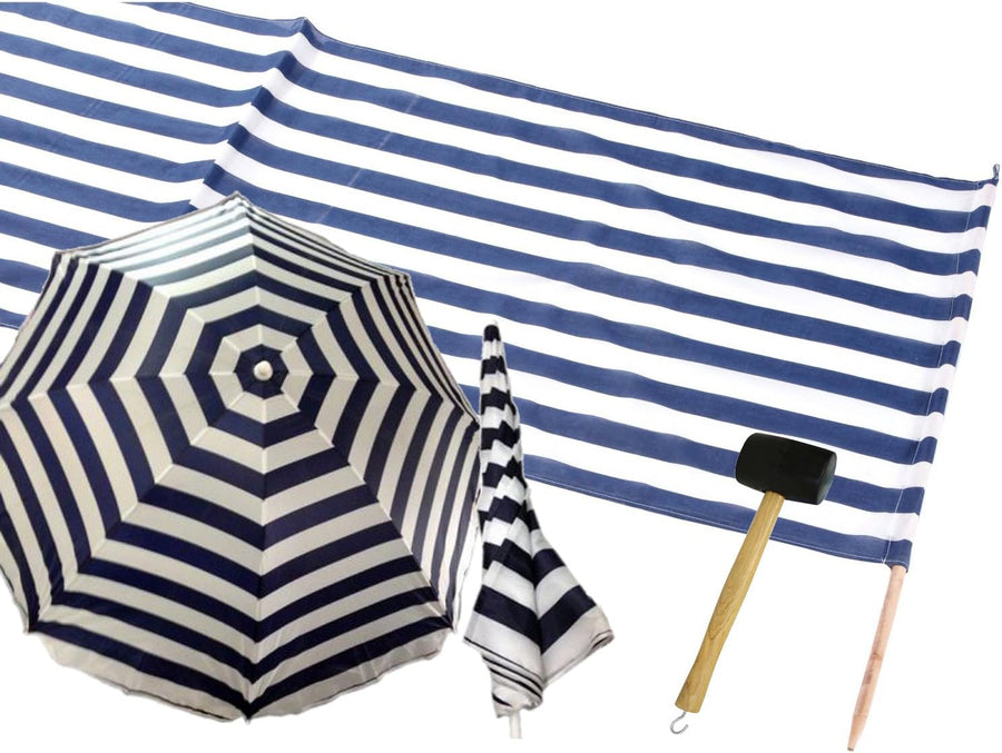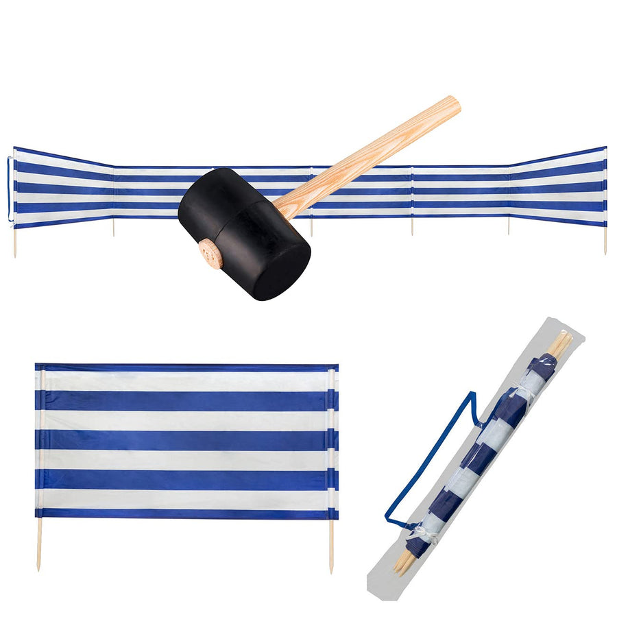 Idena - Windschutz in Blau-Weiss inkl. Gummihammer (weiss), mit Holzstäben, Tragegurt und Fixierungs