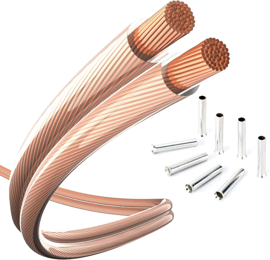 inakustik Lautsprecherkabel, 20m transparent, 2 x 1,5 mm², inkl. 8 Aderendhülsen, verlegefreundliche
