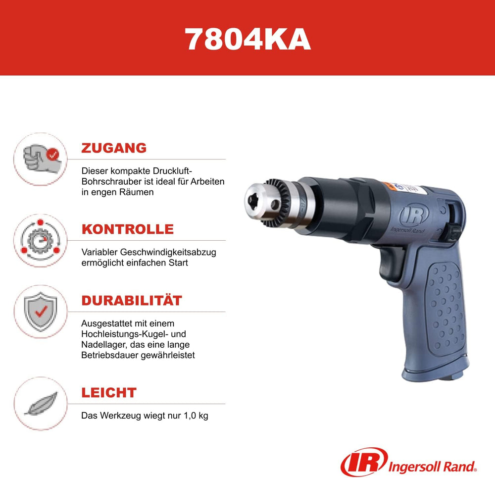 Ingersoll Rand Druckluftbohrmaschine 7804KA, Hochleistungs-Druckluftbohrmaschine mit schlüssellosem