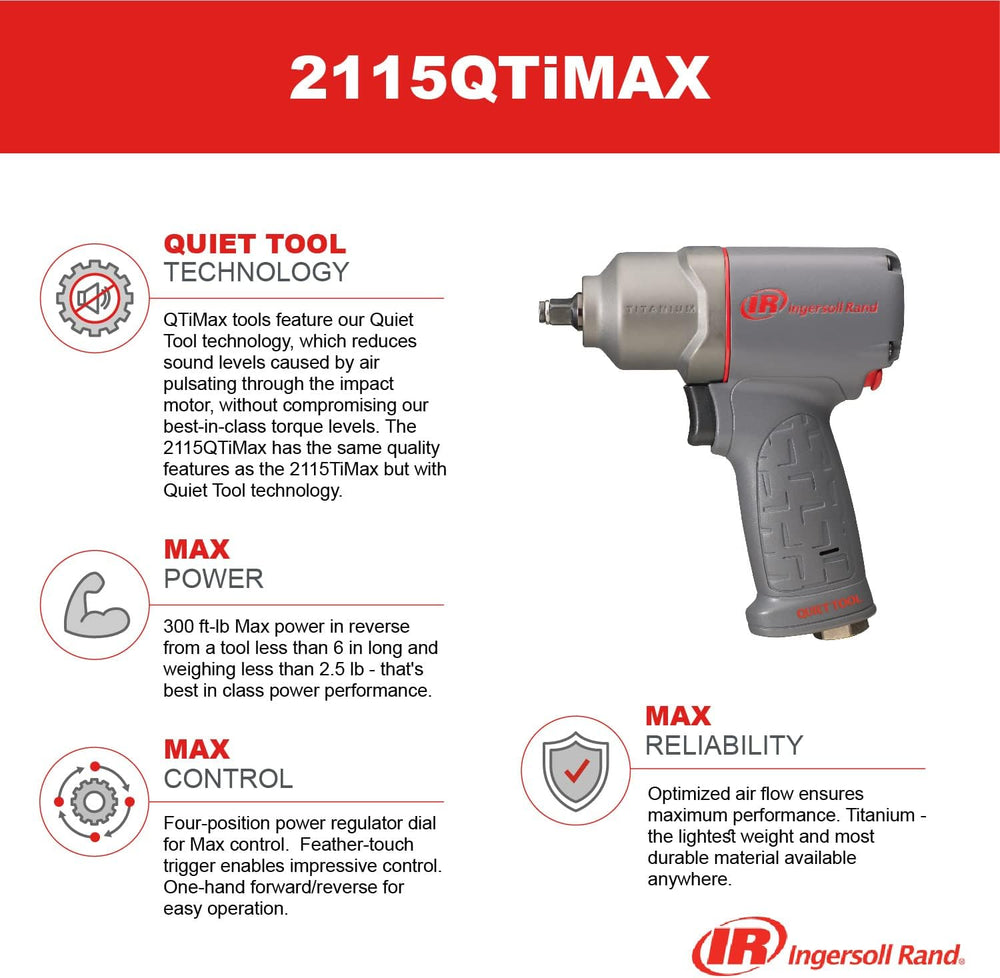 Ingersoll Rand 3/8" Geräuscharmer Schlagschrauber 2115QTiMAX mit leiser Technologie, für schwere Arb