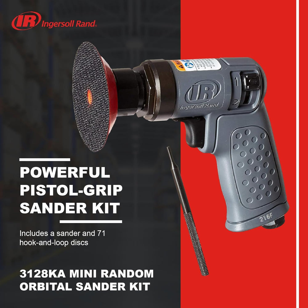 Ingersoll Rand Mini Schwingschleifer Set 3128KA, Druckluft Exzenterschleifer besonders klein und kom