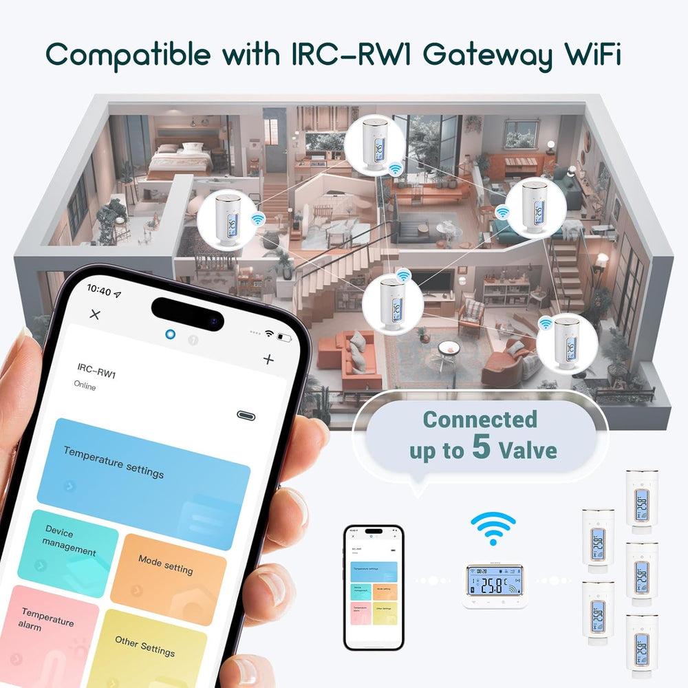 Inkbird IRC-RW1 WLAN Heizkörperthermostat mit Gateway, App-Steuerung, umkehrbarem Bildschirm, 11 Zei