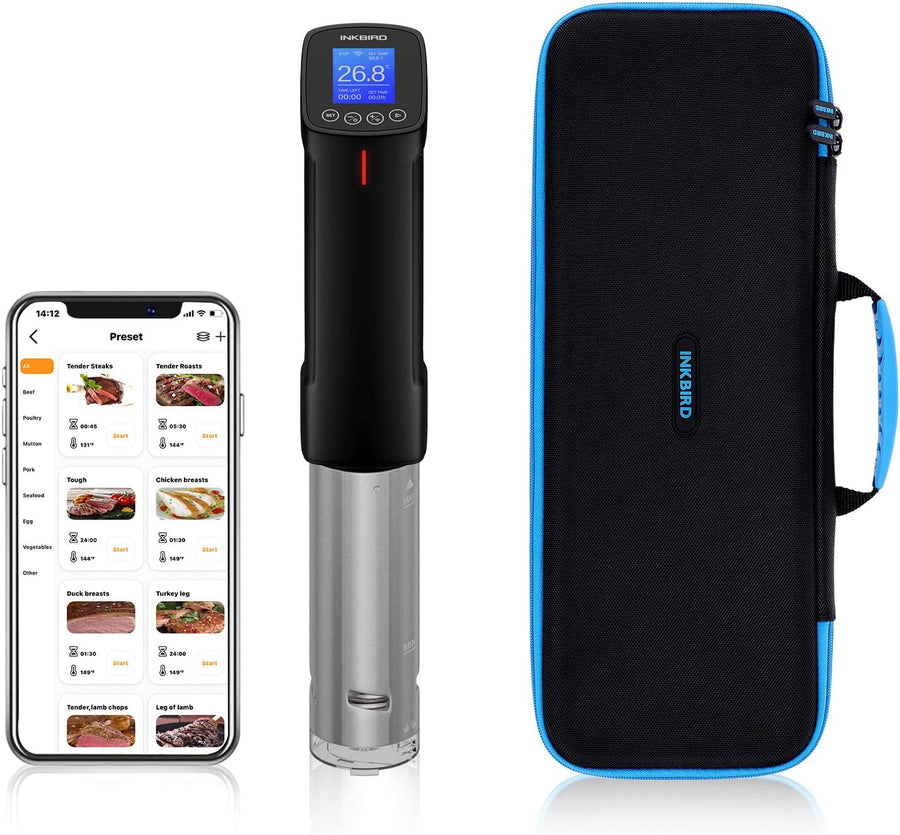 Inkbird Wlan Sous Vide Stick + EVA Tasche Schutz hülle Etui, Sous Vide Garer Wi-Fi-Steuerung, Präzis