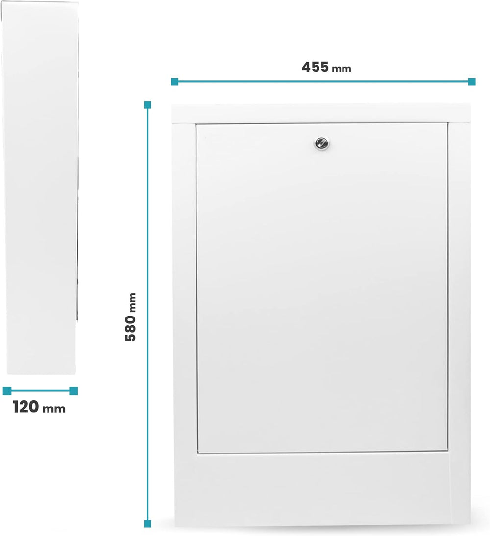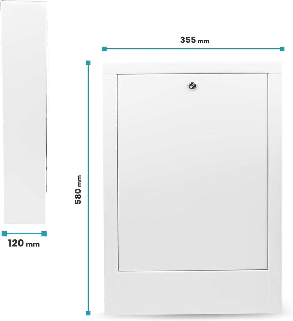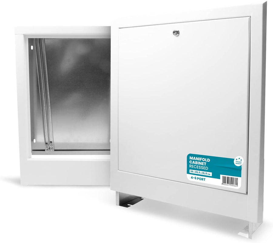Verteilerschrank Zentrale Fussbodenheizung 4-6 Anschlüsse Einbaugehäuse aus Weiss pulverbeschichtete
