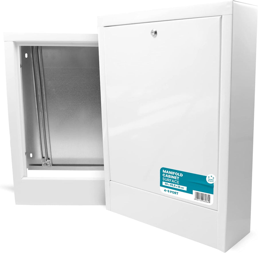 Verteilerschrank Zentrale Fussbodenheizung 4-6 Anschlüsse Aufputzgehäuse aus Weiss Pulverbeschichtet