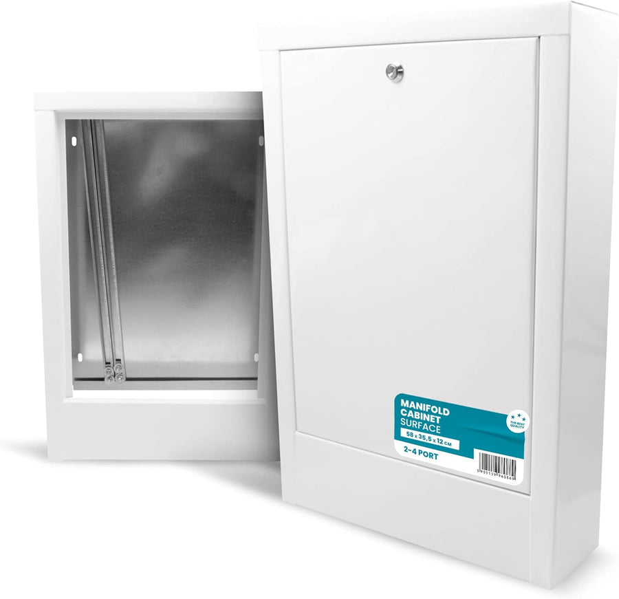 Verteilerschrank Zentrale Fussbodenheizung 2-4 Anschlüsse Aufputzgehäuse aus Weiss Pulverbeschichtet
