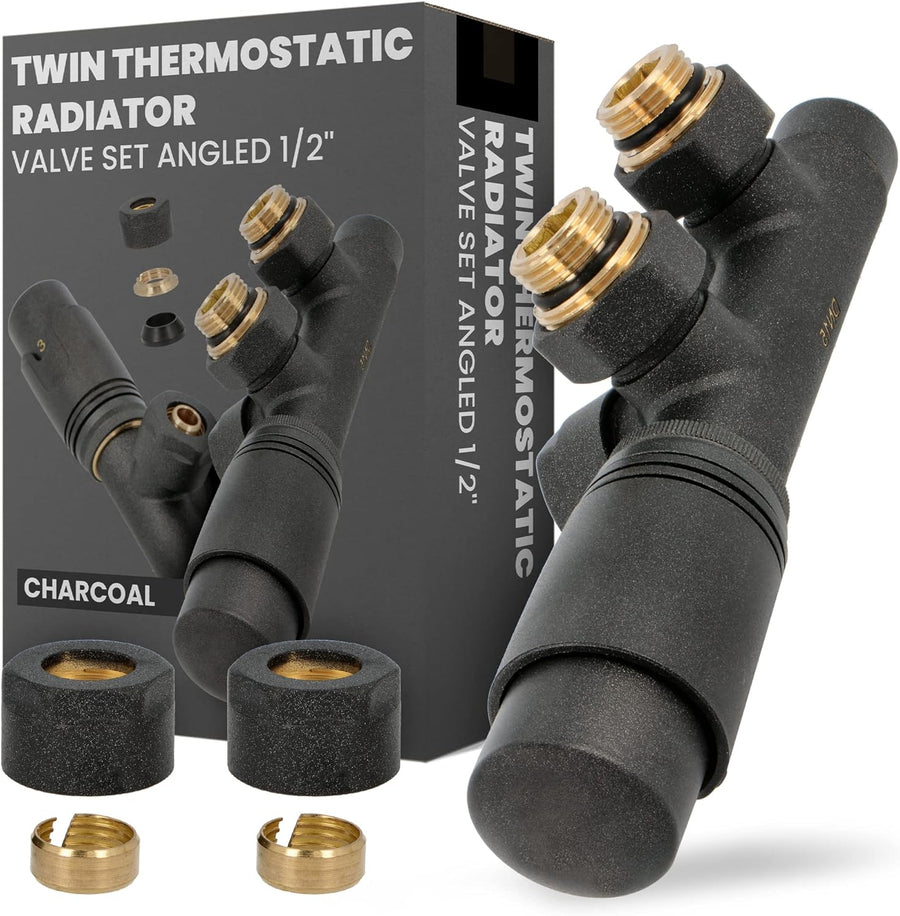 Multiblock Set Heizkörper Thermostat-Heizkörperventil Eckform 1/2'' Anthrazit Anschlussarmatur Therm