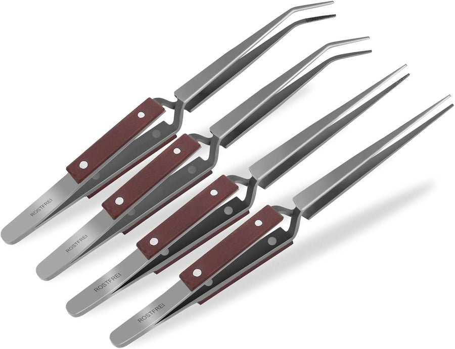 Kreuzpinzetten Set 4-Teilig Lötpinzette Klemmpinzette Technische Pinzette Gerade Gebogen Abgewinkelt