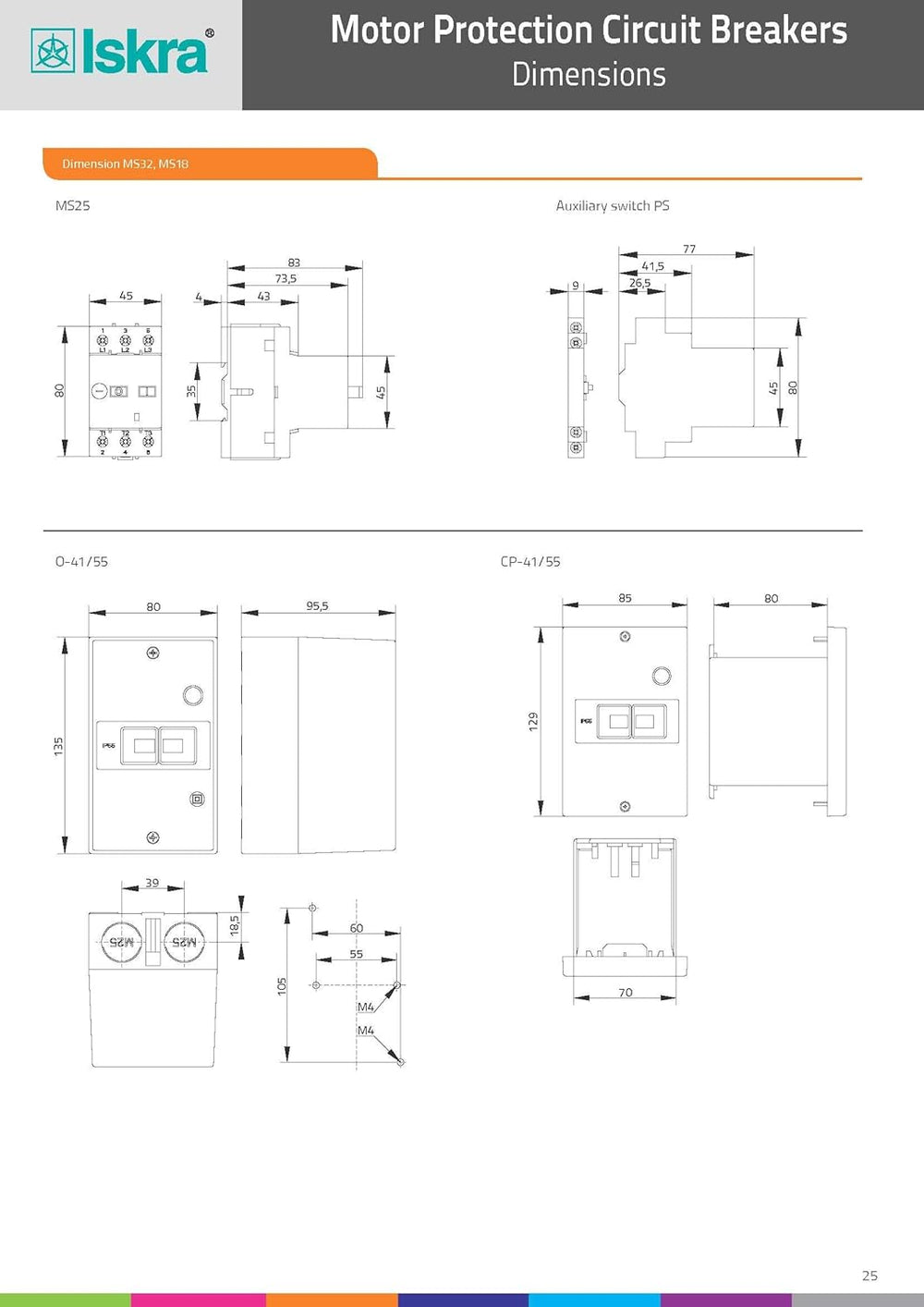 Motorschutzschalter ISKRA MS25 - Modelle 0.1 bis 32A, Überlast- und Kurzschlussschutz, Phasenausfall