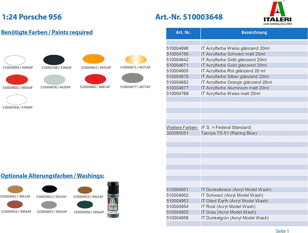 ITALERI 3648S - 1:24 Porsche 956, Modellbau, Bausatz, Standmodellbau, Basteln, Hobby, Kleben, Plasti