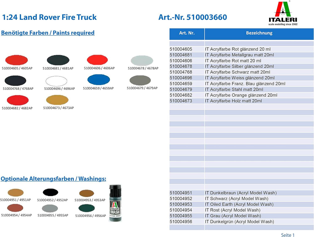 ITALERI 3660S - 1:24 Land Rover Fire Truck , Modellbau, Bausatz, Standmodellbau, Basteln, Hobby, Kle
