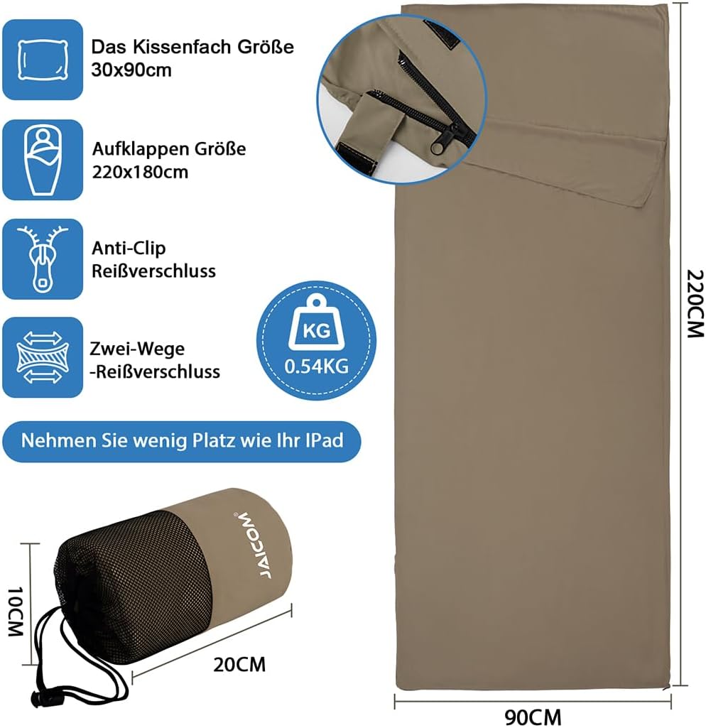 JAICOM Hüttenschlafsack, Ultraleichter Seideschlafsack für Reise, 2in1 Hüttenschlafsack, Bequemer un