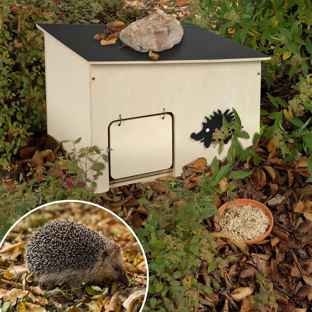Grosses Igelhaus mit Rattenklappe Winterfest, Holz Igelhotel für Winterschlaf und Sommer-Unterschlup