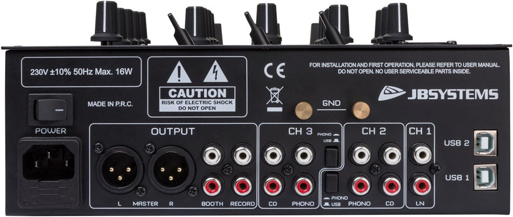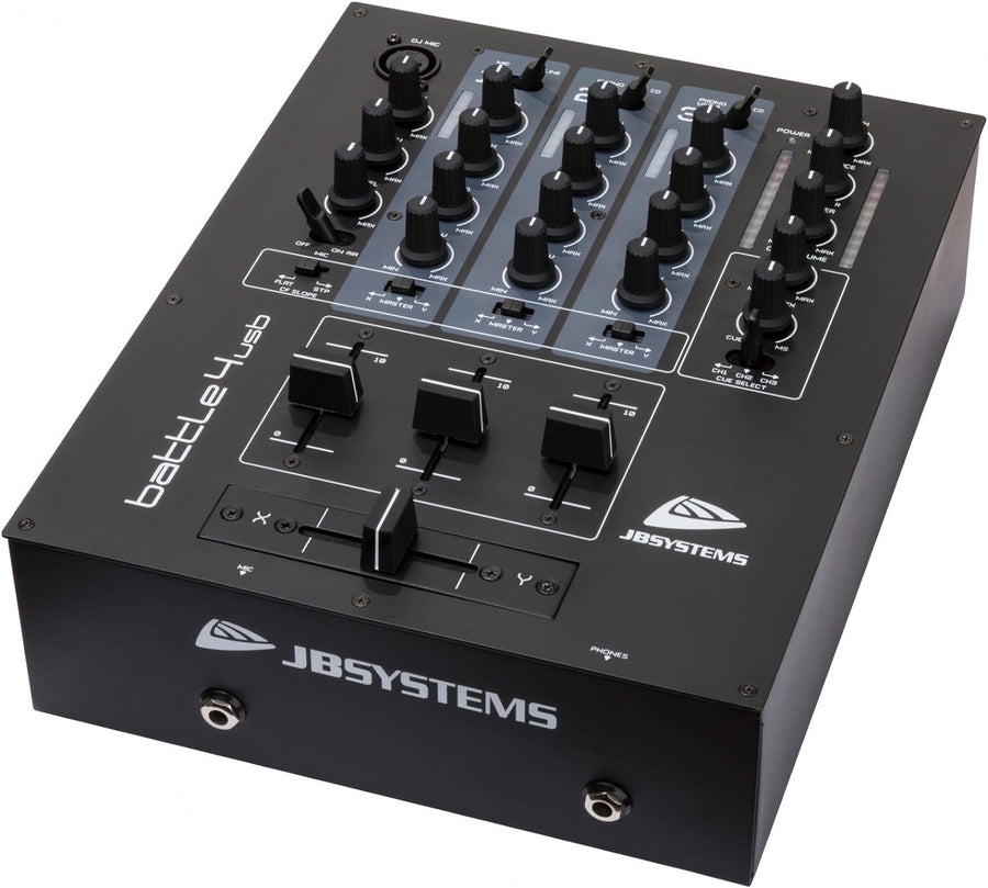 JB Systems BATTLE4-USB 4-Kanal DJ Mixer mit 9 Eingängen verteilt auf 4 Kanäle (3 Line-, 2 Phono-, 2