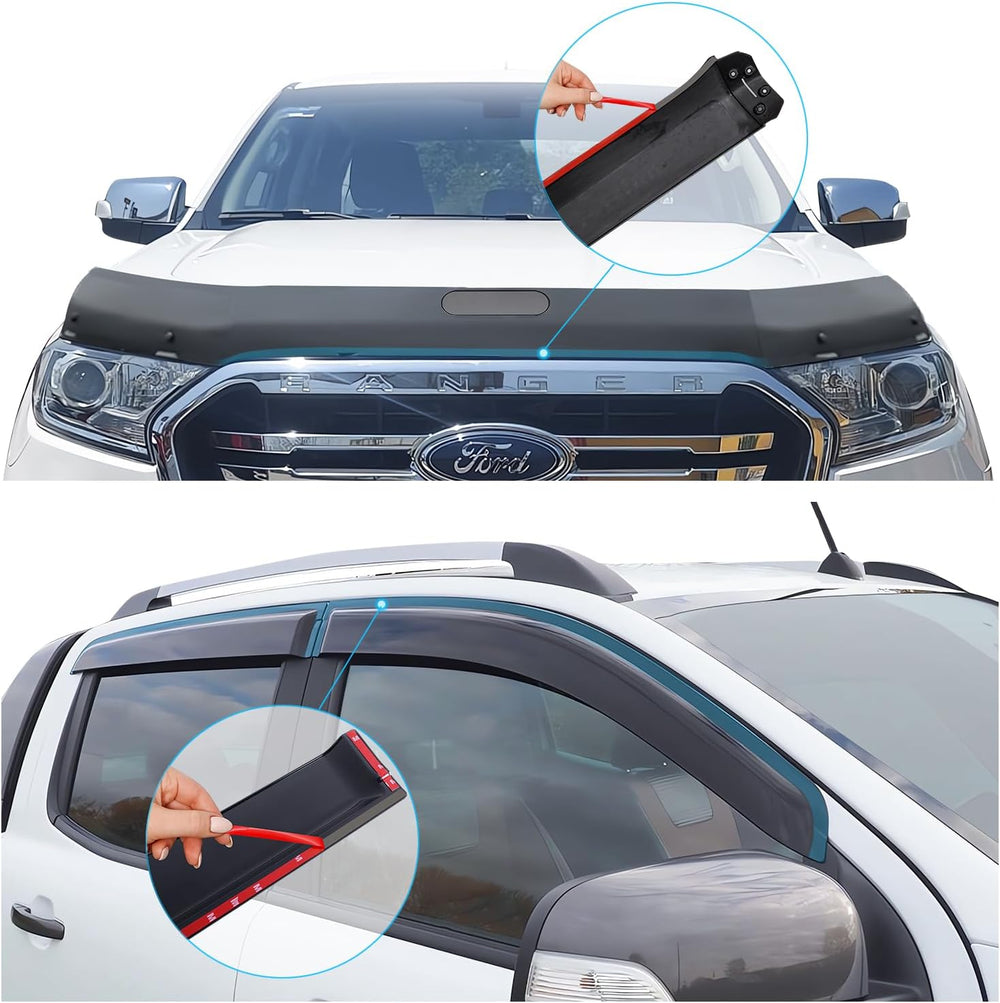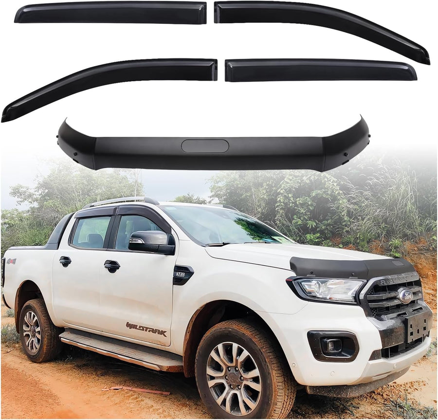 JHCHAN Windabweiser Regenabweiser Schwarz für Ford Ranger 2012-2022 Wildtrak T6 T7 T8 XL XLT Limited