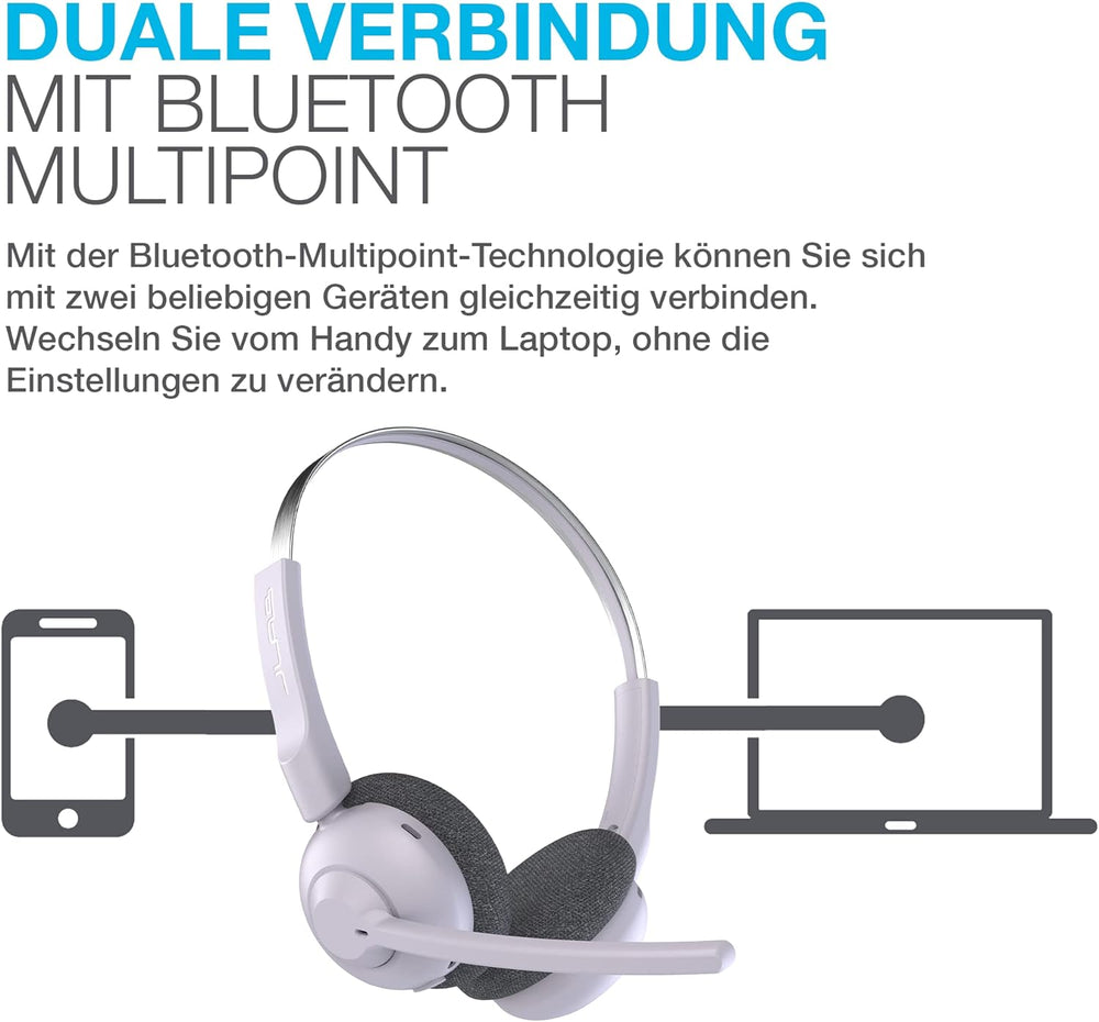 JLab Go Work Pop Wireless Headset mit Mikrofon: 50+ Std. Wiedergabezeit, Kopfhörer mit Mikrofon und