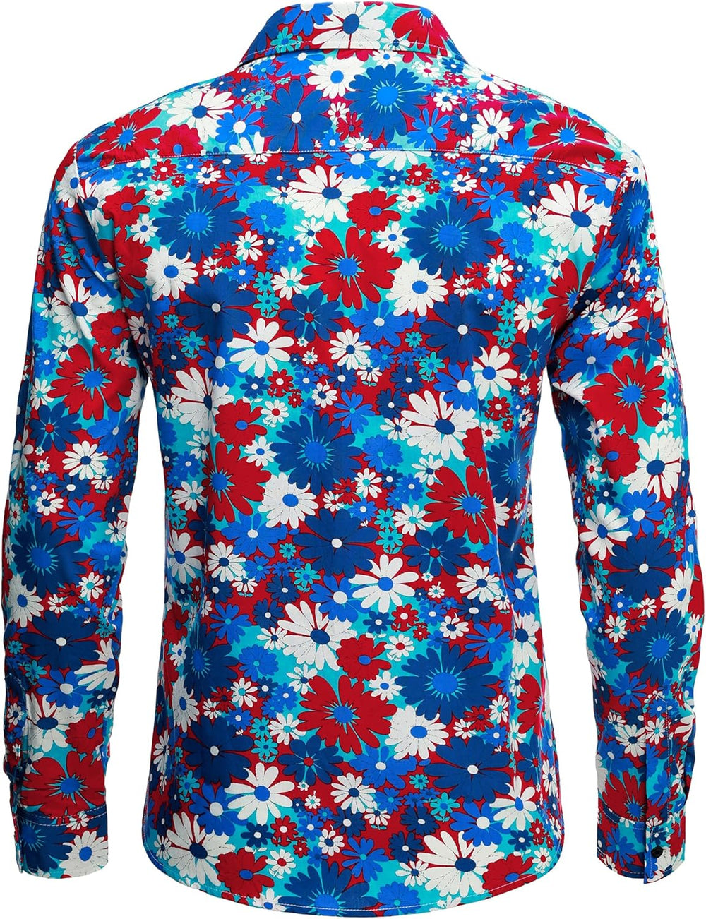 JOGAL Herren Regular Fit Floral Business Hemd Langarm Button Down Print Freizeithemd XXL Blau Rot Gä