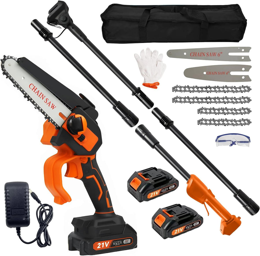 2-in-1 Akku-Pole Säge, hohe Zweigsäge Handkettensäge mit 4&6 Zoll Ketten 2pcs wiederaufladbare 21V B