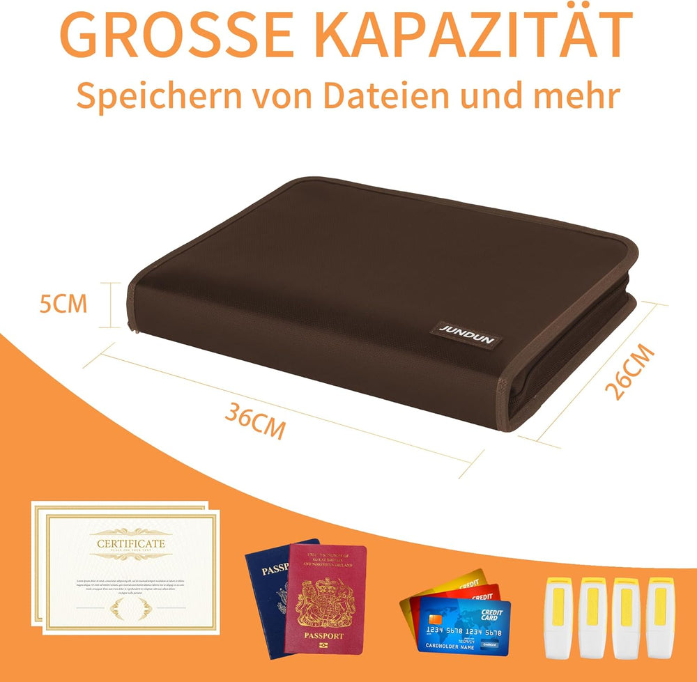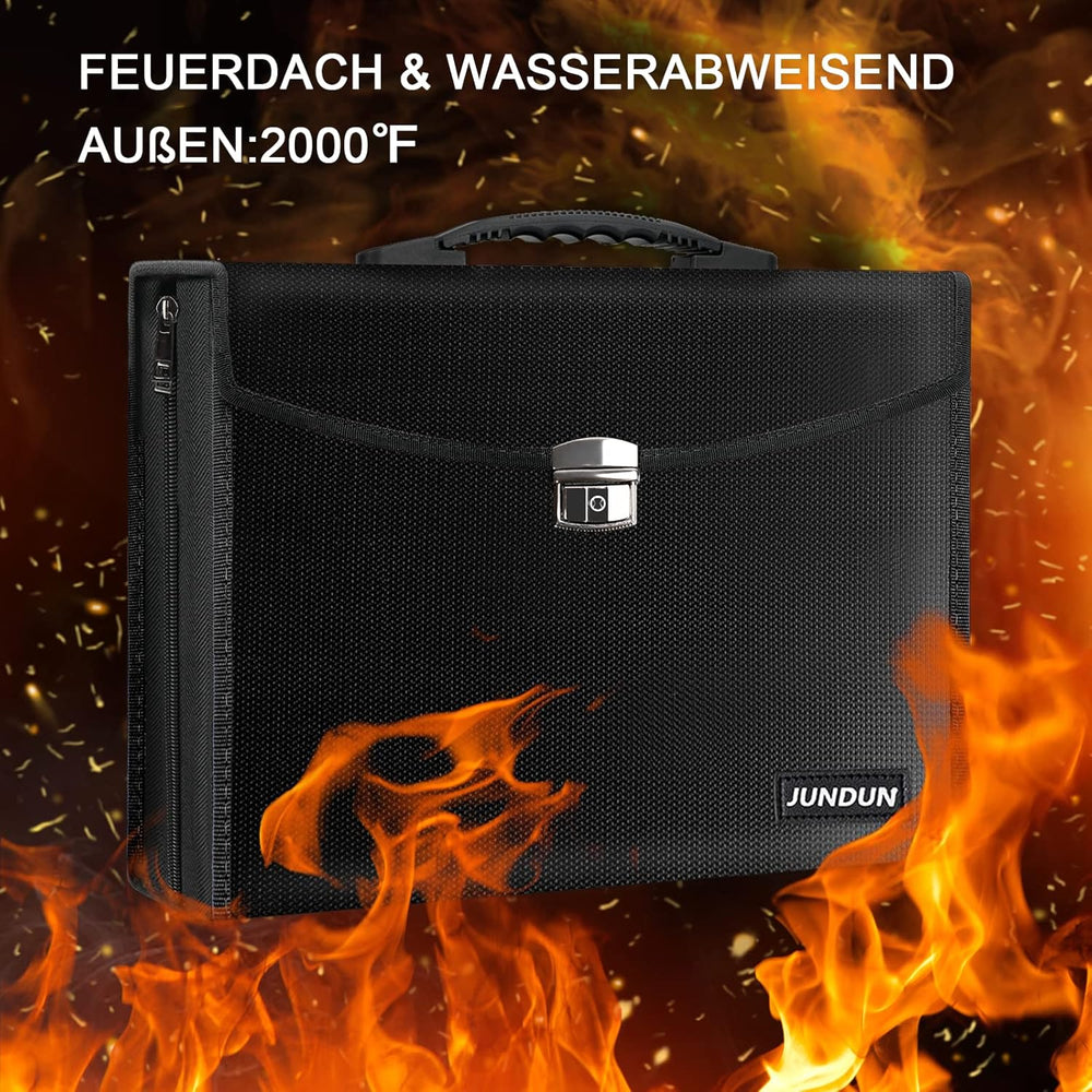 JUNDUN Feuerfest Dokumententasche - Fächermappe A4 Feuerfest mit mehreren Fächern - Dokumentenmappe