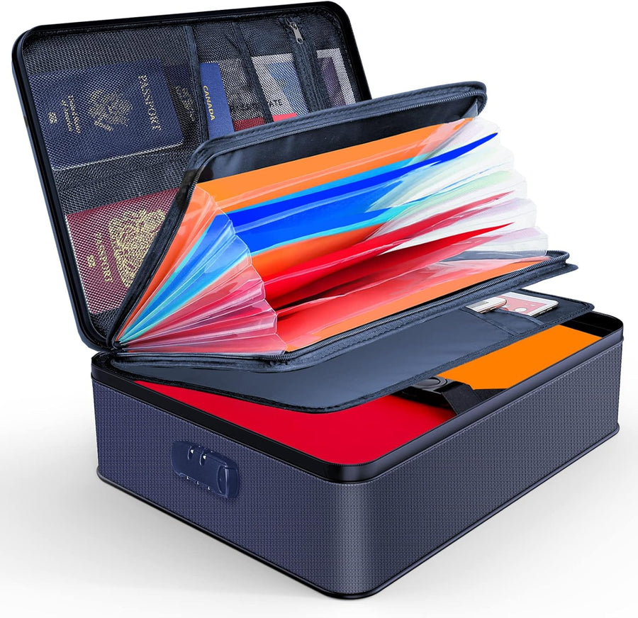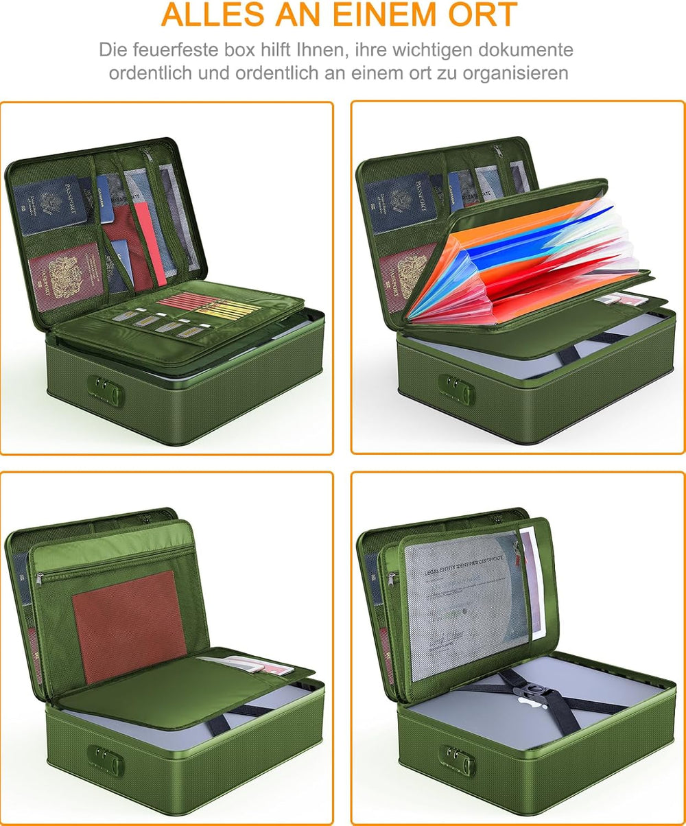 JUNDUN feuerfeste Dokumententasche mit Schloss, Aufbewahrungsbox mit 7 Fächern, Akten-Organizer, tra