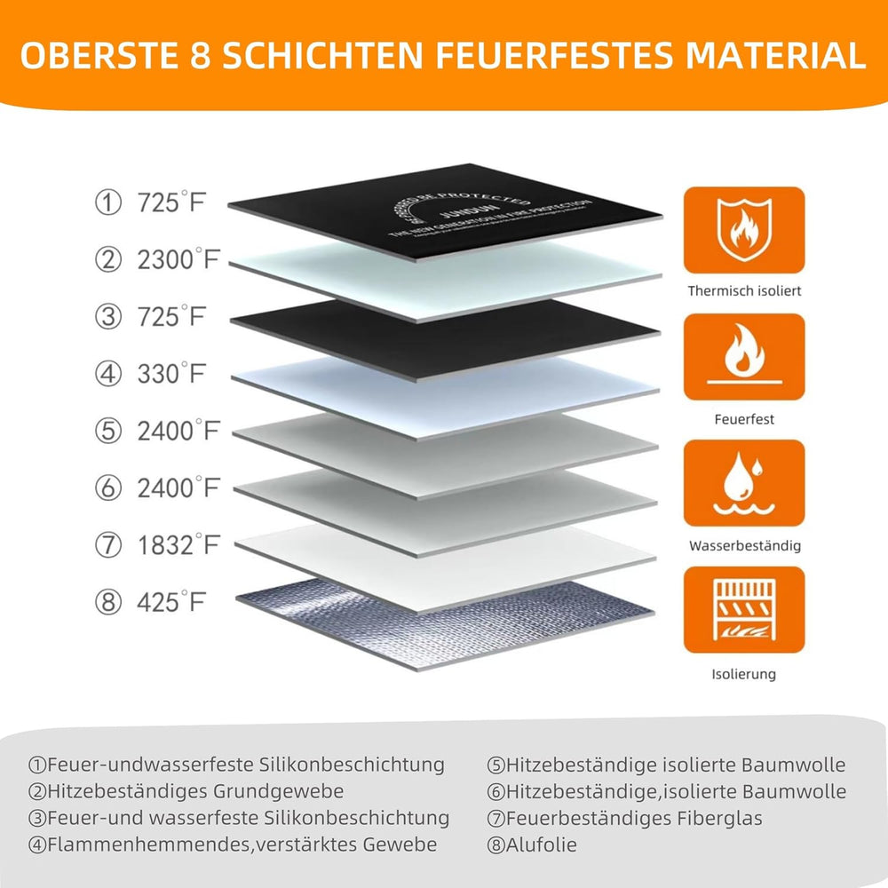 JUNDUN Feuerfeste Dokumententasche mit 5200℉ Wärmeisolierung, 36x26cm Wasserdichte und feuerfeste Ge
