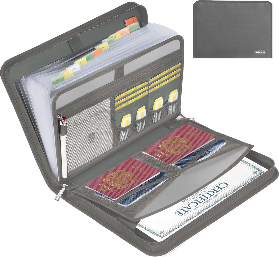 JUNDUN Fächermappe - Dokumentenmappe a4 mit mehreren Fächern - Feuerfest Dokumententasche mit Reissv