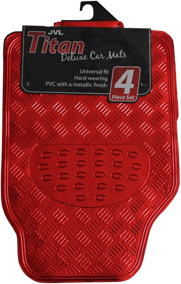 JVL 01-692 Titan Automatten-Set Metallisch mit Gummirückseite, Rot, 4-teilig, Rot