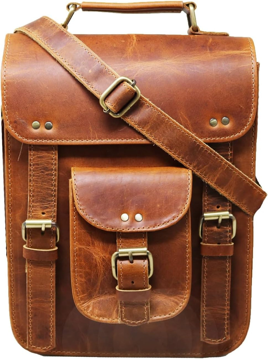 Jaald 11" Kleinleder Messenger Bag Umhängetasche Cross Body Vintage-Kurier-Beutel für Damen und Herr